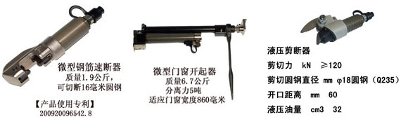 汶川大地震后,各類的救援隊都在反應救援過程中工具使用的局限性。在狹小的空間里現(xiàn)有的救援工具由于質(zhì)量重、幾何尺寸大、雙手操作、需要使用較大的動力源等問題,給使用工具造成了很多障礙。 單油管、單手操作、重量輕、微型化的液壓救援工具是我公司的成果,它操作簡單可以在狹小空間內(nèi)使用。 該工具以手動泵或電動泵為動力,重量輕,作用力大,效率高,簡單的單手操作模式,使救援人員在窄小空間里使用單手更加靈活的使用工具變的可能。 噪音低